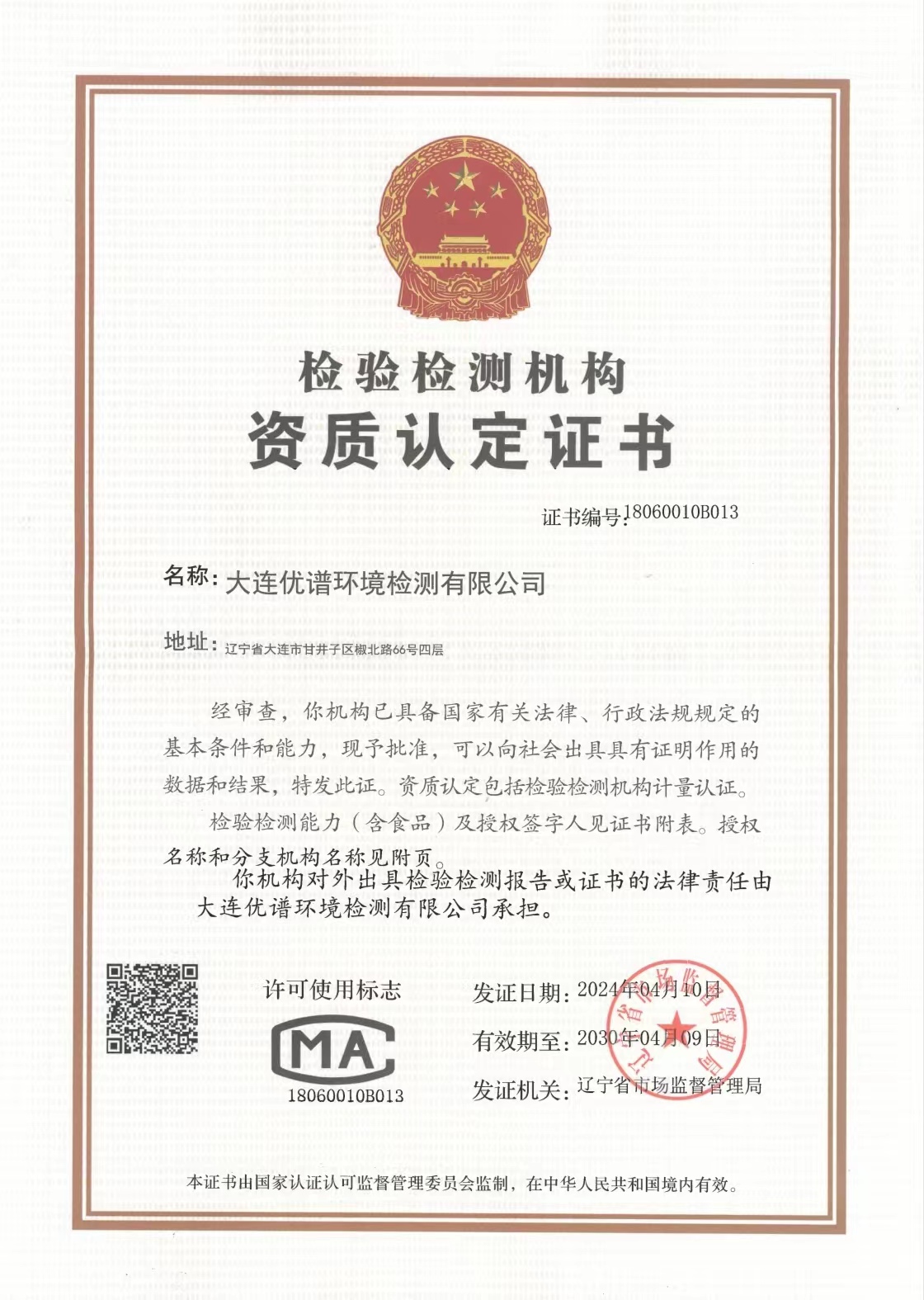 大連優(yōu)譜環(huán)境檢測(cè)有限公司環(huán)境檢測(cè)CMA資質(zhì)在遼寧省質(zhì)量技術(shù)監(jiān)督局網(wǎng)站上查詢(xún)。